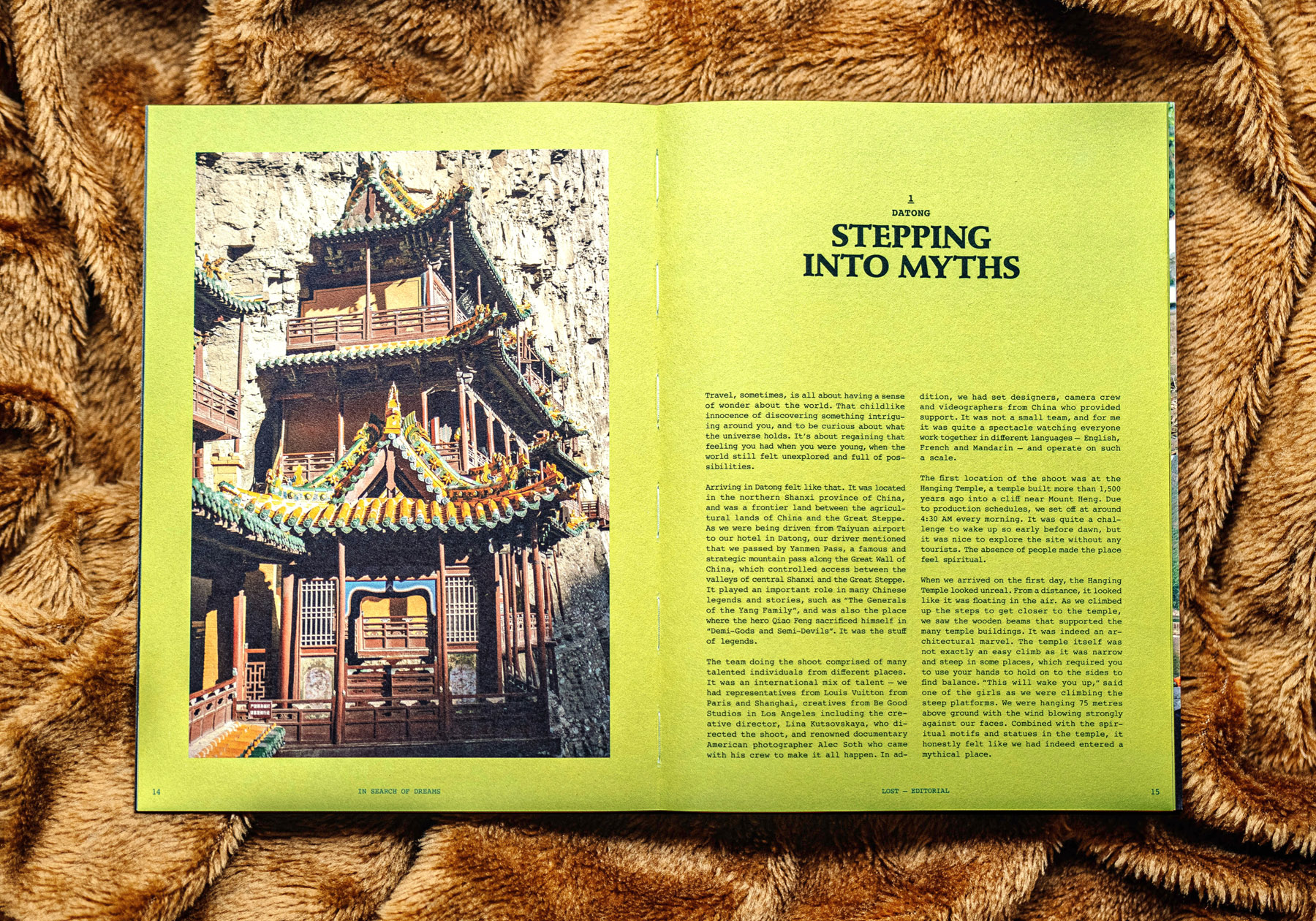 We go behind the scenes of Louis Vuitton’s latest global brand campaign and travel with the creative team to mythical places across China in the article “In Search of Dreams”.