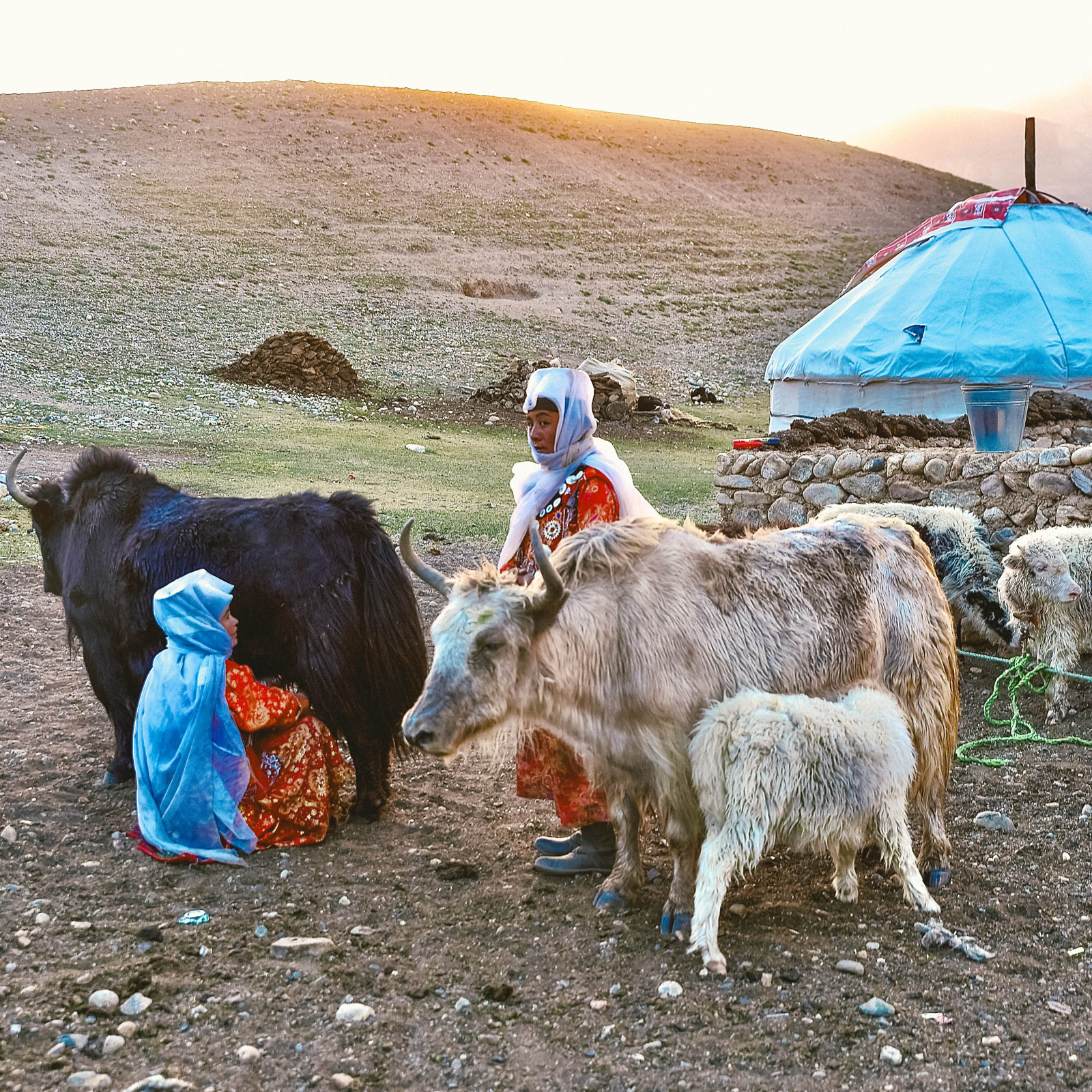 We ask Eimatambeg how many Kyrgyz people live here on the plateau around Lake Chaqmaqtin. He doesn’t know exactly, but he estimates around a thousand. The fact that so many Kyrgyz people live far from their homeland, isolated in this inhospitable environment, where the temperature falls below freezing 340 days a year, the wind blows across the plain and even grass struggles to grow, has its origins in the 18th century. At that time, the Kyrgyz began to use the valleys of the “Little Pamir” as summer pastureland. When winter came, they moved to warmer areas. During the Russian Revolution of 1917, the Wakhan Corridor was a refuge for the Kyrgyz. With the establishment of the Soviet Union, the borders remained closed until 1950. The Kyrgyz people thus “automatically became Afghan citizens” and could only migrate with their herds within the Wakhan Corridor. When the communist government of Afghanistan was established in 1978, some fled to Pakistan, with some of them returning soon afterwards or settling in eastern Turkey.